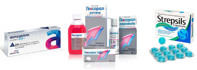 В первую очередь – это полоскания. Для них могут использоваться отвары лекарственных трав или уже готовые растворы. Наиболее часто для полоскания горла рекомендуют Фурацилин, Хлоргексидин, Хлорофиллипт.