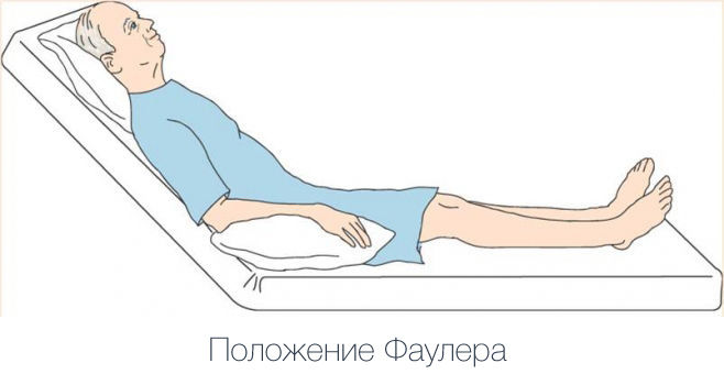 - придать пациенту положение Фовлера (с приподнятым головным концом);