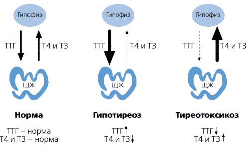 - Пониженный ТТГ при беременности является симптомом гипотиреоза, эутиреоза, тиреотоксикоза.