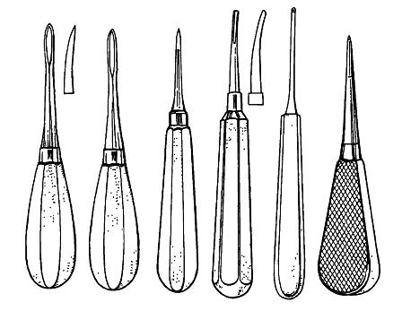 И так же как щипцы каждый вид элеваторов, действующих по принципу рычага, предназначен для отдельной группы зубов, относительно расположения их в зубном ряду, применяются также по усмотрению доктора независимо от расположения корня.