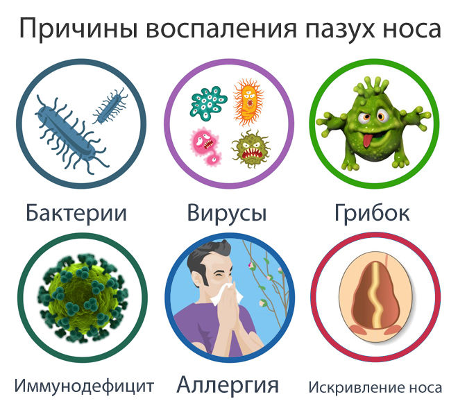 При воспалении основной пазухи носа считается, что процесс провоцируется в большинстве случаев вирусами, но возможны бактериальные и грибковые заражения.
